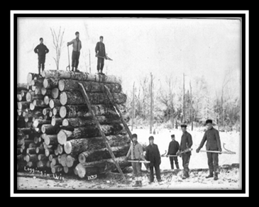 Logs were stacked on the riverbank until the spring thaw. When river levels were high the logs were pushed into the river to float down to the sawmills. This was called “the log drive”.